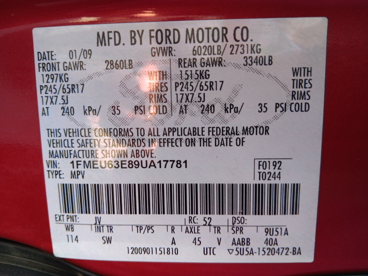 1FMEU63E89UA17781